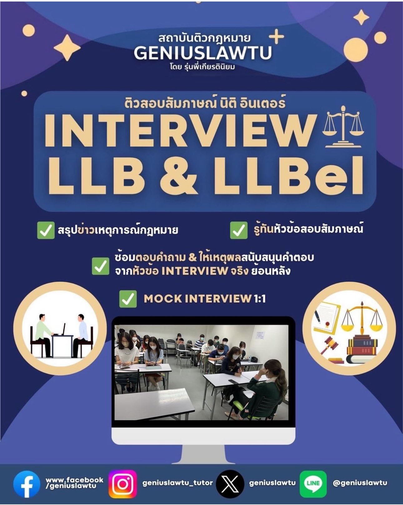 โทรสมัครที่พี่ส้มโอโดยตรงที่หมายเลข 089-1668677 และส่งข้อมูลส่วนตัวให้พี่ส้มโอทางอีเมลล์ geniuslawtuclub@gmail.com หรือ Line@ ID : @geniuslawtu (มี @ ด้วยนะคะ)